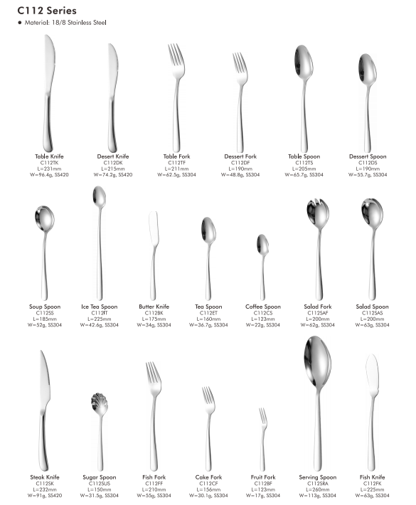 Серия C112 изготовлена из высококачественной нержавеющей стали 18/8.