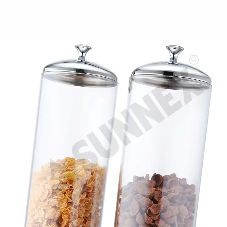 Диспенсеры с ночной сталью с контейнерами для ПК -контейнеров имеют прочную основу из нержавеющей стали, созданную для того, чтобы выдерживать занятые коммерческие настройки, такие как кафе, отели и буфет, сохраняя при этом гладкий и профессиональный вид. Оснащенный двумя контейнерами для ПК с 4LTR, он обеспечивает достаточно места для хранения для различных зерновых, мюл или сухих закусок, сохраняя их свежими и легко доступными.